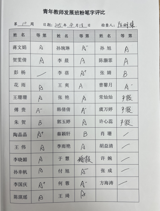 ?2024-2025学年度第二学期第10周青发班粉笔字考核成绩