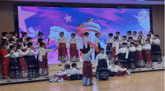 这是一场与历史的对话,更是一次精神的传承。三(2)班的同学们以青春之声叩响历史的回音壁,诵读间,黄河的奔腾、红旗漫卷的山川仿佛就在眼前。他们捧起的不仅是诗篇,更是星火相传的誓言,用少年意气诠释着“托举明天太阳”的豪情与梦想。