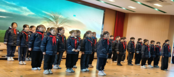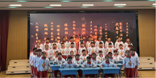 “少年智则国智,少年强则国强!” 当这句跨越百年的铿锵宣言从三(1)班孩子们口中涌出,稚嫩的嗓音里满是不容小觑的坚定力量。他们身着整齐服装,眼神明亮、姿态昂扬,将少年的壮志与担当融入每一个字句,仿佛让我们看见新时代中华少年奋勇向前的蓬勃身姿,赢得全场阵阵掌声。